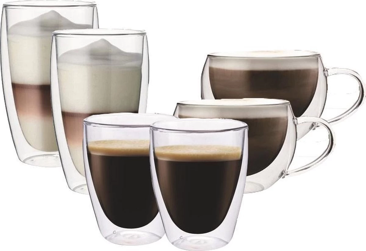 Glazenset, koffie, Latte & Cappuccino – Set van 6 – Maxxo