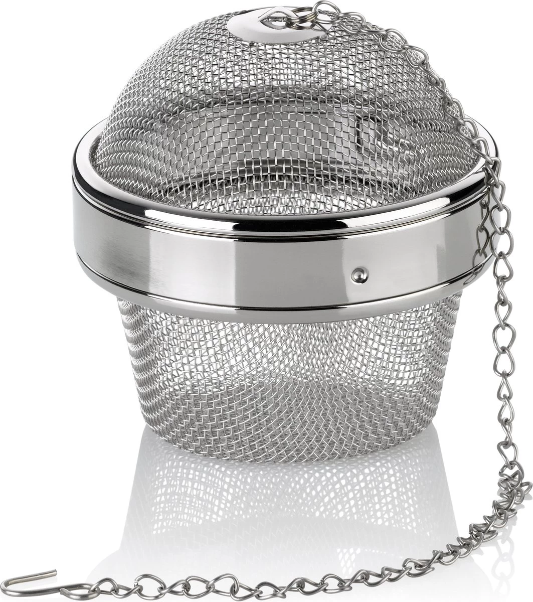 Deze kruidenbol inclusief handige ketting is ideaal voor het laten trekken van verse kruiden. Je opent het bolletje, doet de kruiden er in en doopt deze in het warme water. Als het recept naar wens op smaak is en de gewenste sterkte heeft bereikt, verwijder je de kruidenbol door deze op te tillen aan de ketting en laat deze uitlekken.