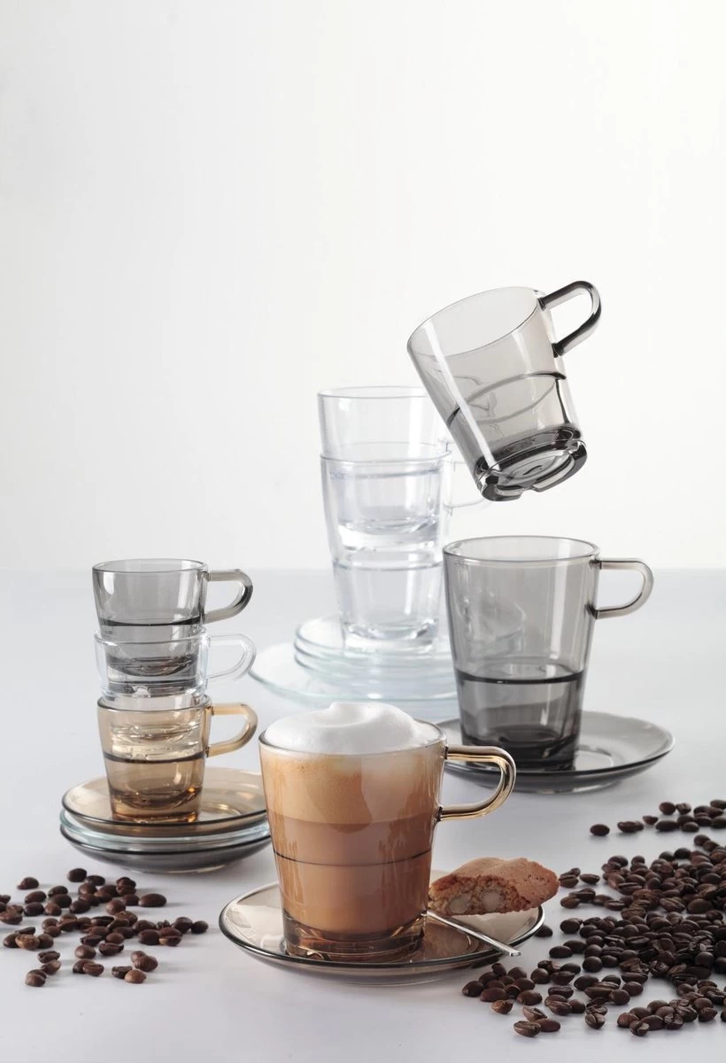 De Senso koffielijn van Leonardo is een mooie en functionele aanvulling op je servies. De glazen zijn zo ontworpen dat ze makkelijk stapelbaar zijn en er ook nog leuk uitzien. De bodem van het glas is gemaakt van getemperd glas waardoor er rechtstreeks vanuit de waterkoker of Quooker geschonken kan worden, zonder dat er kans is op breuk of scheuren in het glas. De glazen zijn geschikt voor de vaatwasmachine, in de bodem zijn zelfs 3 gleufjes aangebracht zodat er geen water in blijft staan als je de vaatwasser uitruimt. Tevens zorgt dit ervoor dat bij gebruik van het schoteltje het glas niet wegglijdt. Over dit glas is nagedacht. Een set bevat 6 koffieglazen.