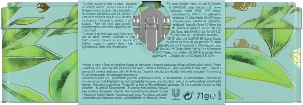 - Het Lipton Kaleidoscope tinnen blik bevat een selectie van 40 theeën en kruideninfusies​.