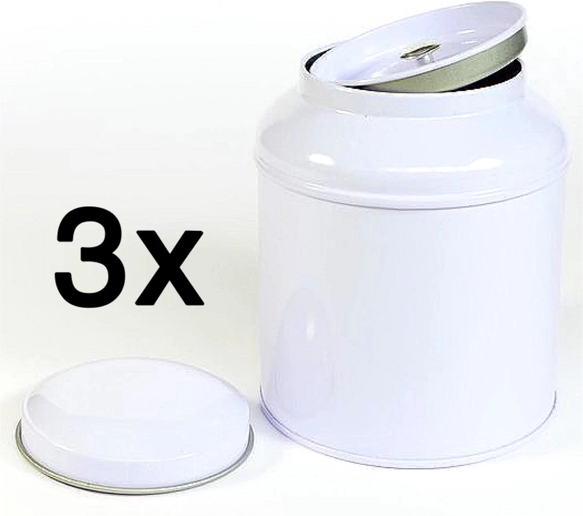 | Verpakkingsinhoud | 3 stuks witte theeblik rond met binnendeksel. |