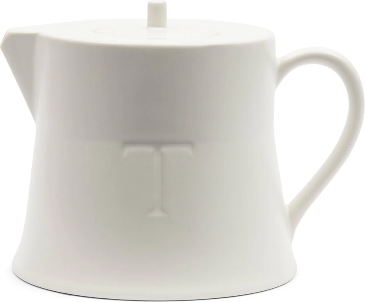Ouderwets thee zetten in een pot, met de RM Tea Pot matte white bijvoorbeeld. Thee uit een pot smaakt het beste. De pot is van keramiek, matwit geglazuurd en heeft een grote T op zijn buik. Er zijn van dit ontwerp ook een melkkannetje en een suikerpot verkrijgbaar.